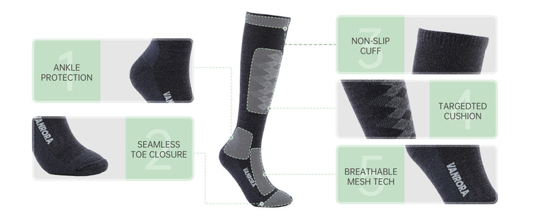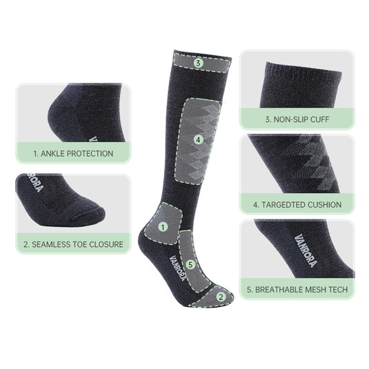 Experience unparalleled warmth with VANRORA's Keystone Ski Socks. Our socks provide all-day warmth, making them perfect for conquering the slopes or enjoying winter activities. The breathable mesh tech ensures your feet stay cozy from morning runs to apres-ski gatherings.
